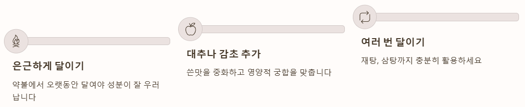 - 은근하게 달이기: 고온에서 짧게 끓이기보다 약불에서 오랫동안 달여야 영지버섯 효능 성분이 잘 우러납니다.