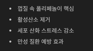 | 폴리페놀 | 강력한 항산화 작용 | 노화 방지 및 항암 보조 |