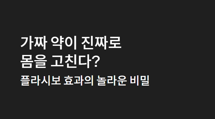 플라시보 효과란? 가짜 약이 몸을 고치는 놀라운 심리의 과학