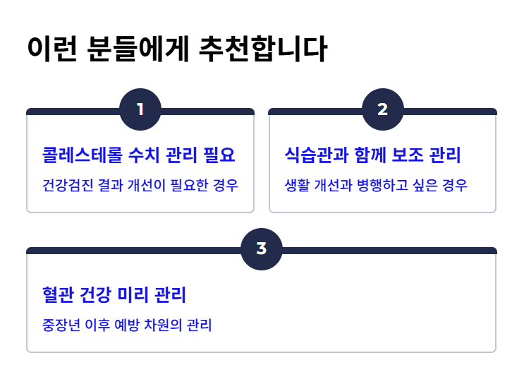 - 중장년 이후 혈관 건강을 미리 관리하고 싶은 경우