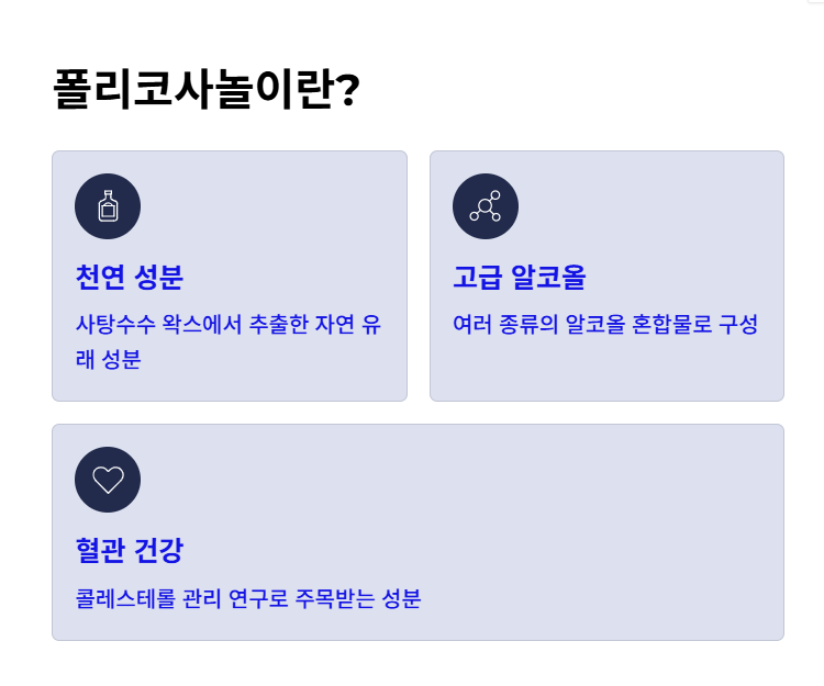 이처럼 폴리코사놀은 특정 질환 치료 목적보다는 생활 관리 차원의 선택지로 많이 고려됩니다.