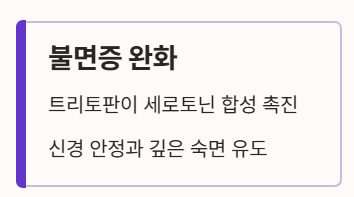 - 불면증 완화: 둥글레차에는 트리토판이라는 성분이 함유되어 있어 세로토닌 합성을 돕습니다. 이는 신경을 안정시키고 깊은 잠을 잘 수 있도록 유도하여 둥글레차가 숙면에 큰 도움을 줍니다.