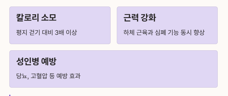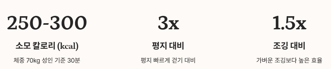 1. 강력한 칼로리 소모: "평지 걷기의 3배 효과"
