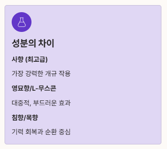 3. 성분에 따른 차이: "사향 vs 침향 vs 사향대체물질"