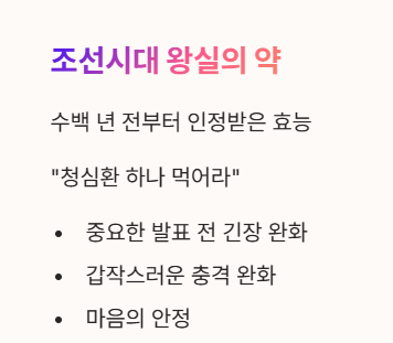중요한 발표를 앞두고 손이 떨리거나, 갑작스러운 비보를 듣고 정신이 아득해질 때 우리는 "청심환 하나 먹어라"라는 말을 듣곤 합니다. 조선시대 왕실에서도 사용되었던 우황청심환은 오늘날까지도 그 효능을 인정받아 널리 쓰이고 있습니다.