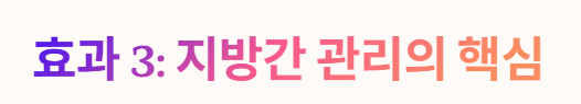 - 비알코올성 지방간(NAFLD): 고열량 식단으로 인해 간에 쌓이는 중성지방 수치를 조절하는 데 도움을 주어, 대사 증후군 관리의 핵심적인 역할을 수행합니다.