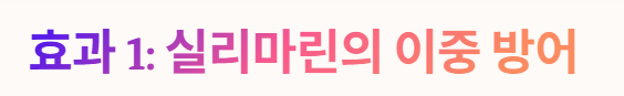 - 독소 차단: 실리마린은 간세포의 바깥쪽 세포막에 결합하여 유해 독소가 세포 내로 침투하는 것을 물리적으로 차단합니다.