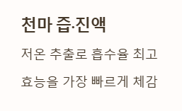 - 천마 즙/진액: 가장 대중적인 방법으로, 저온 추출한 천마 즙은 흡수율이 높고 천마 효능을 가장 빠르게 느낄 수 있습니다.