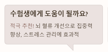 A. 네, 적극 추천합니다! 천마는 뇌 혈류를 개선하고 신경을 안정시켜 집중력을 높여주는 천마 효능이 있어 수험생들의 두뇌 회전과 스트레스 관리에 매우 효과적입니다.