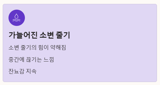 소변 줄기가 힘이 없고 가늘어지며, 중간에 끊기는 느낌이 든다면 이 역시 전립선 암 초기증상일 가능성이 큽니다. 시원하게 배뇨가 되지 않는 느낌(잔뇨감) 역시 전형적인 전립선 암 초기증상 중 하나입니다.