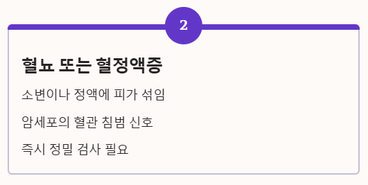 소변이나 정액에 피가 섞여 나오는 것은 매우 위급한 전립선 암 초기증상일 수 있습니다. 암세포가 주변 혈관을 침범하여 출혈을 일으키는 것이므로, 이런 전립선 암 초기증상이 나타난다면 즉시 정밀 검사를 받아야 합니다.