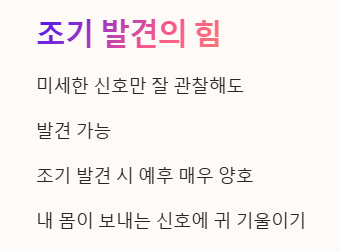 ✅ 암 세포가 커질 때 나타나는 6가지 증상, 특히 ‘이 증상’은 주의!암은 조기에 발견하면 생존율이 크게 높아지지만, 초기 증상이 뚜렷하지 않아 발견이 늦어지는 경우가 많습니다.그렇기 때