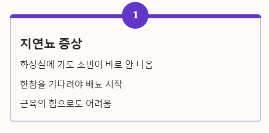 | 주요 특징 | 배뇨 불편감이 서서히 진행 | 증상이 없다가 갑자기 나타날 수 있음 |