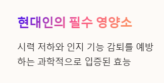 | 핵심 효과 | 뇌·눈 보호 | 면역·피부 | 여성 건강 |