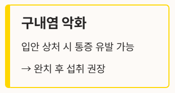 - 아프타성 구내염: 입안에 상처가 있거나 궤양이 있는 경우 레몬즙의 산이 통증을 유발할 수 있으므로 완치 후 섭취하세요.