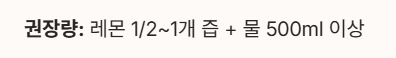 - 미지근한 물에 희석하기: 너무 뜨거운 물은 비타민 C를 파괴하고, 찬물은 흡수가 느릴 수 있습니다. 체온과 비슷한 미지근한 물에 레몬즙을 섞는 것이 가장 효과적입니다.