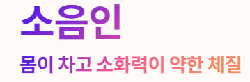 1. 소음인 (몸이 차고 소화력이 약한 체질)