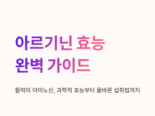 운동을 즐기는 분들이나 만성 피로에 시달리는 직장인들 사이에서 필수 영양제로 꼽히는 것이 있습니다. 바로 '활력의 아미노산'이라 불리는 아르기닌입니다. 하지만 유행에 따라 무작정 섭취하기보다는 아르기닌의 효능이 정확히 무엇인지, 나에게 정말 필요한 성분인지 파악하는 것이 우선입니다. 아르기닌의 효능을 제대로 알고 먹으면 최고의 부스터가 되지만, 잘못 먹으면 오히려 몸에 부담을 줄 수 있기 때문입니다. 오늘은 건강한 에너지를 위해 반드시 알아야 할 아르기닌의 효능 7가지와 부작용, 그리고 올바른 섭취방법을 심도 있게 분석해 보겠습니다.