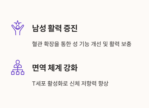 - 남성 활력 증진: 혈관 확장 작용은 남성의 성 기능 개선과 활력 보충이라는 아르기닌의 효능으로 이어집니다.
