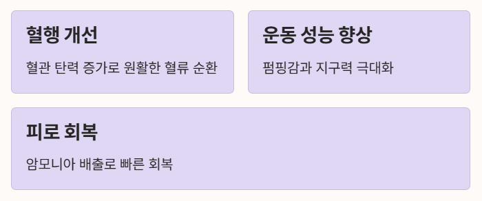 - 피로 회복 및 암모니아 배출: 단백질 대사 과정에서 생기는 독소인 암모니아를 제거하여 피로를 줄여주는 아르기닌의 효능이 탁월합니다.