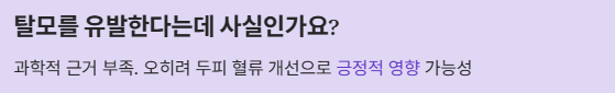 - A2. 과학적 근거가 부족합니다. 오히려 혈행을 돕는 아르기닌의 효능이 두피 혈류를 개선한다는 시각도 있습니다.