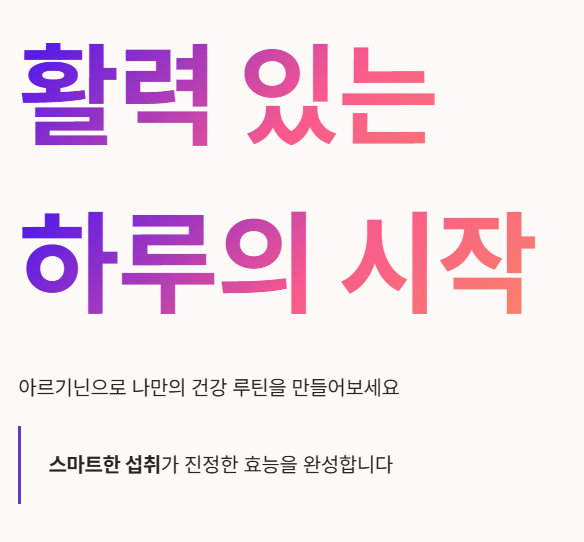 - 운동 성능 향상: 근육으로 가는 산소와 영양분 공급을 늘려 펌핑감과 지구력을 높여주는 아르기닌의 효능 덕분에 헬스인들에게 인기가 높습니다.