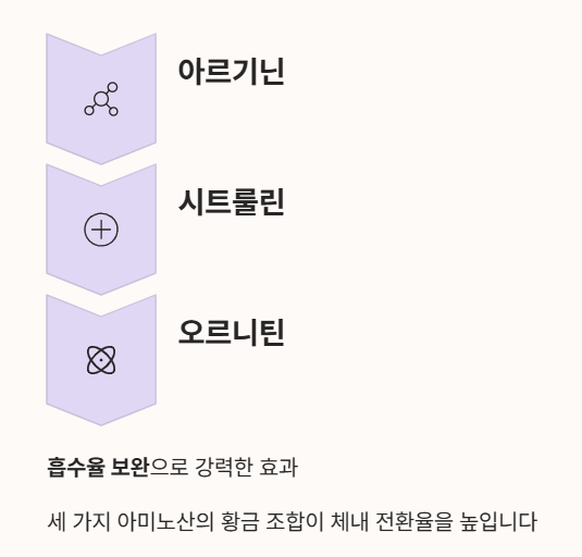- 시너지 성분 조합: 오르니틴, 시트룰린과 함께 배합된 제품을 선택하면 흡수율이 보완되어 더 강력한 아르기닌의 효능을 경험할 수 있습니다.