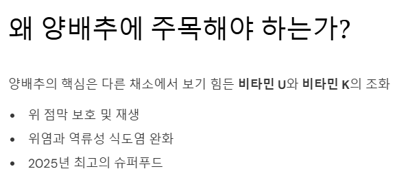 양배추 효능은 단순히 속을 편하게 하는 것을 넘어 전신 건강을 돌보는 자연의 명약입니다. 오늘부터 식탁 위에 양배추를 올려보세요. 꾸준한 양배추 효능 섭취가 여러분의 10년 뒤 건강을 바꿀 수 있습니다.