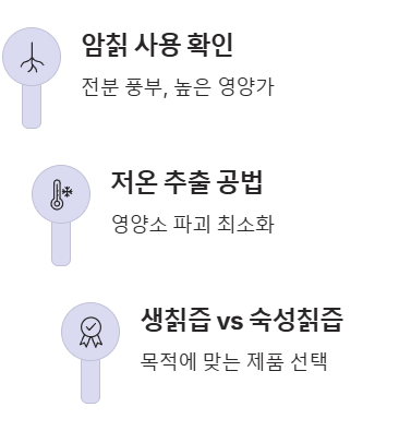 - 생칡즙 vs 숙성칡즙: 신선한 영양을 원하면 생칡즙을, 부드러운 목 넘김과 흡수율을 원하면 숙성된 칡즙 효능 제품 추천합니다.
