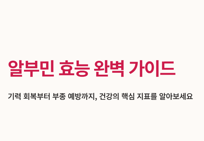 - 영양제 과신 금지: 시중의 알부민 영양제는 '단백질 보충제' 성격이 강하므로, 수치를 직접 올리는 알부민 효능과는 차이가 있을 수 있습니다.