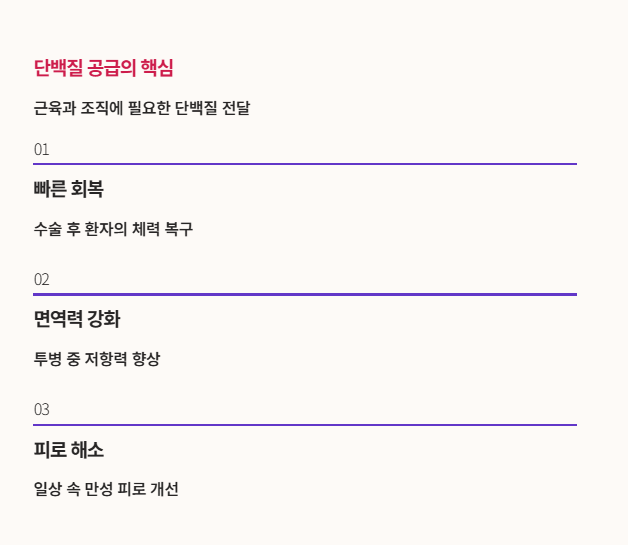 근육과 조직에 필요한 단백질을 공급하는 알부민 효능은 기력 회복에 탁월합니다. 수술 후나 투병 중인 환자들이 알부민 효능을 위해 수액을 맞는 이유도 빠른 회복과 면역력 강화를 돕는 알부민 효능 때문입니다. 일상 속 만성 피로 역시 알부민 효능 부족에서 기인하는 경우가 많습니다.