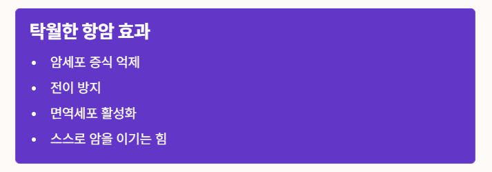 가장 널리 알려진 상황버섯 효능은 암세포의 증식과 전이를 억제하는 것입니다. 베타글루칸 성분이 암세포를 직접 공격하기보다 면역 세포를 활성화하여 스스로 암을 이기게 돕는 상황버섯 효능을 발휘합니다.