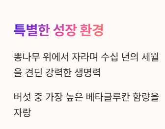 - 체질적 특성: 찬 성질을 가지고 있어 몸이 아주 차가운 분들은 과다 섭취 시 설사를 유발할 수 있으므로 소량부터 상황버섯 효능을 테스트해보세요.